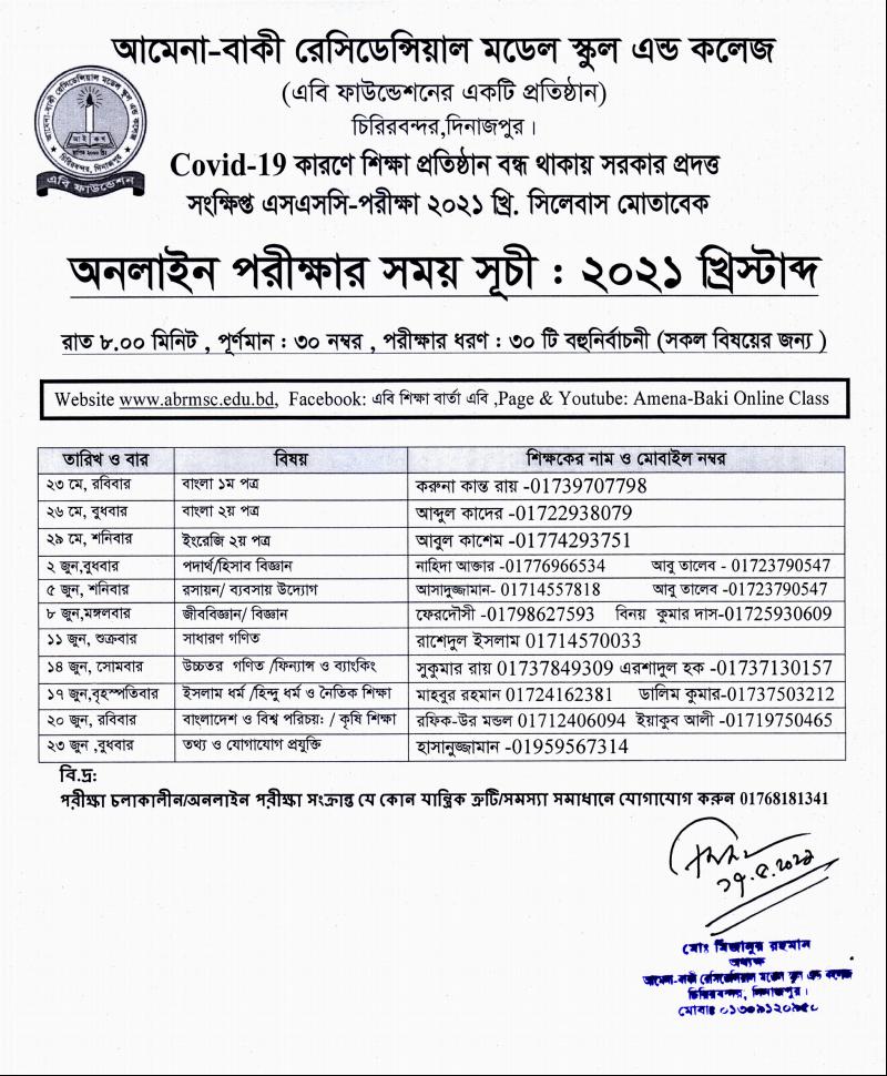 কোভিড-১৯ এর কারনে এস এস সি -২০২১ সংক্ষিপ্ত সিলেবাস অনুযায়ী এম সি কিউ অনলাইন পরীক্ষা-২০২১