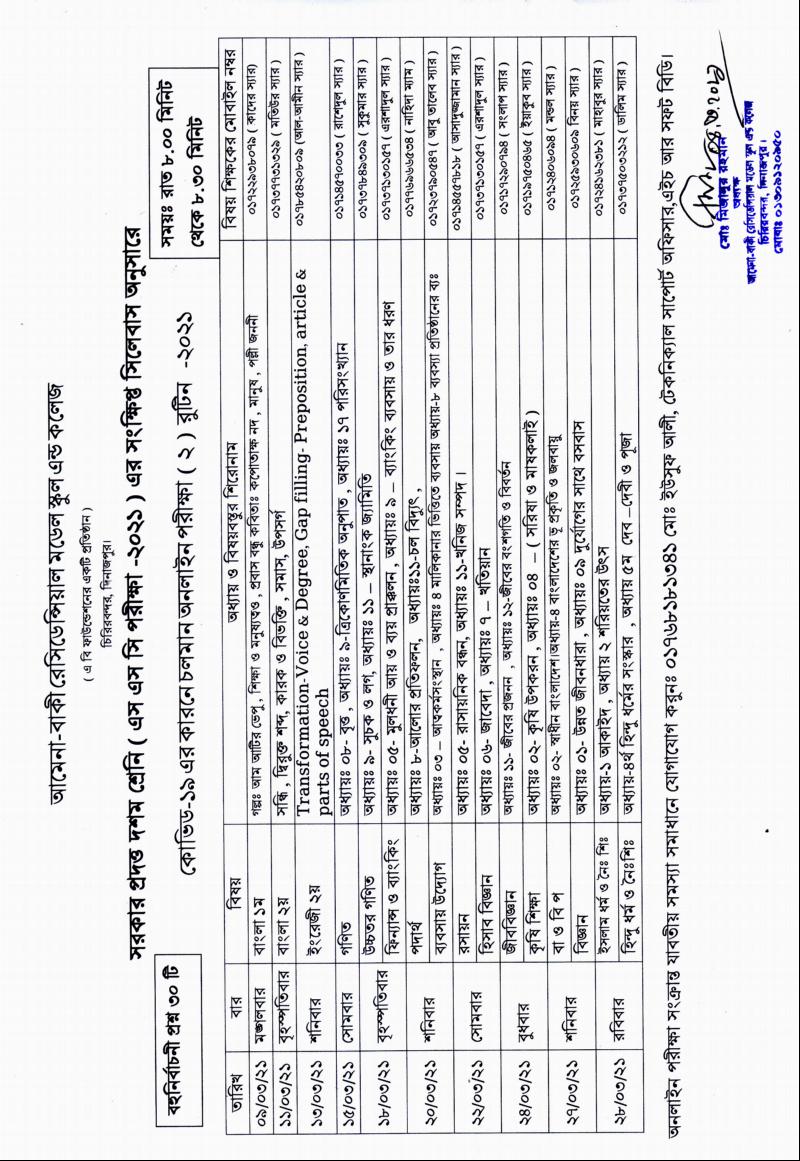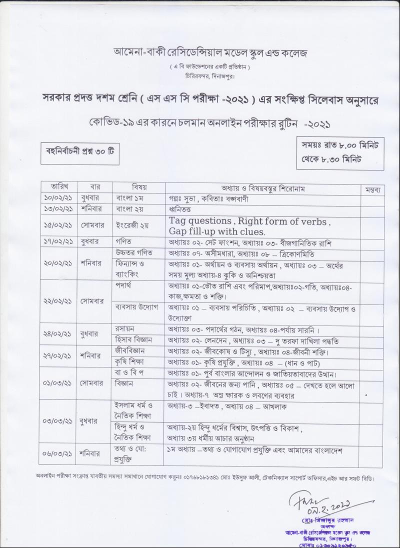 কোভিড-১৯ এর কারনে এস এস সি -২০২১ সংক্ষিপ্ত সিলেবাস অনুযায়ী এম সি কিউ অনলাইন পরীক্ষা