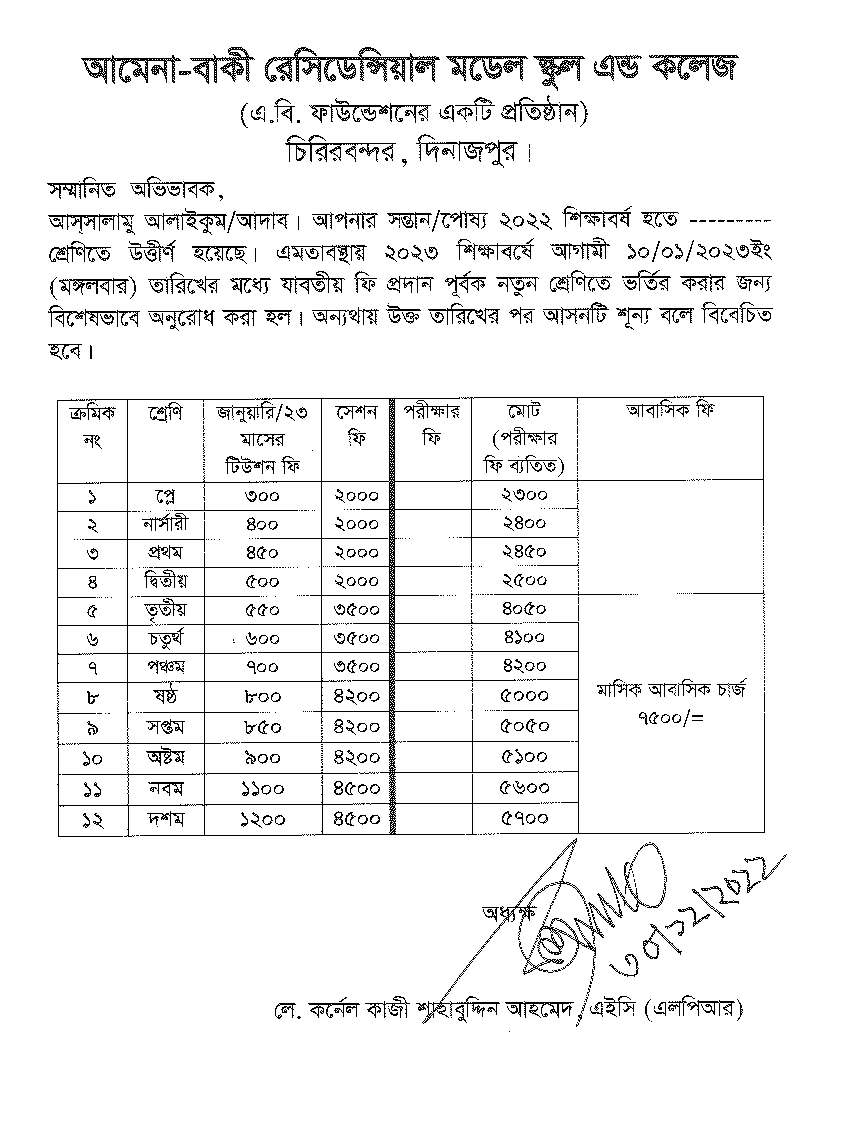 প্লে থেকে ৬ষ্ঠ ও নবম শ্রেণি ৫ জানুয়ারি ২০২৩ খ্রিঃ দুপুর ১২ টা পর্যন্ত।
