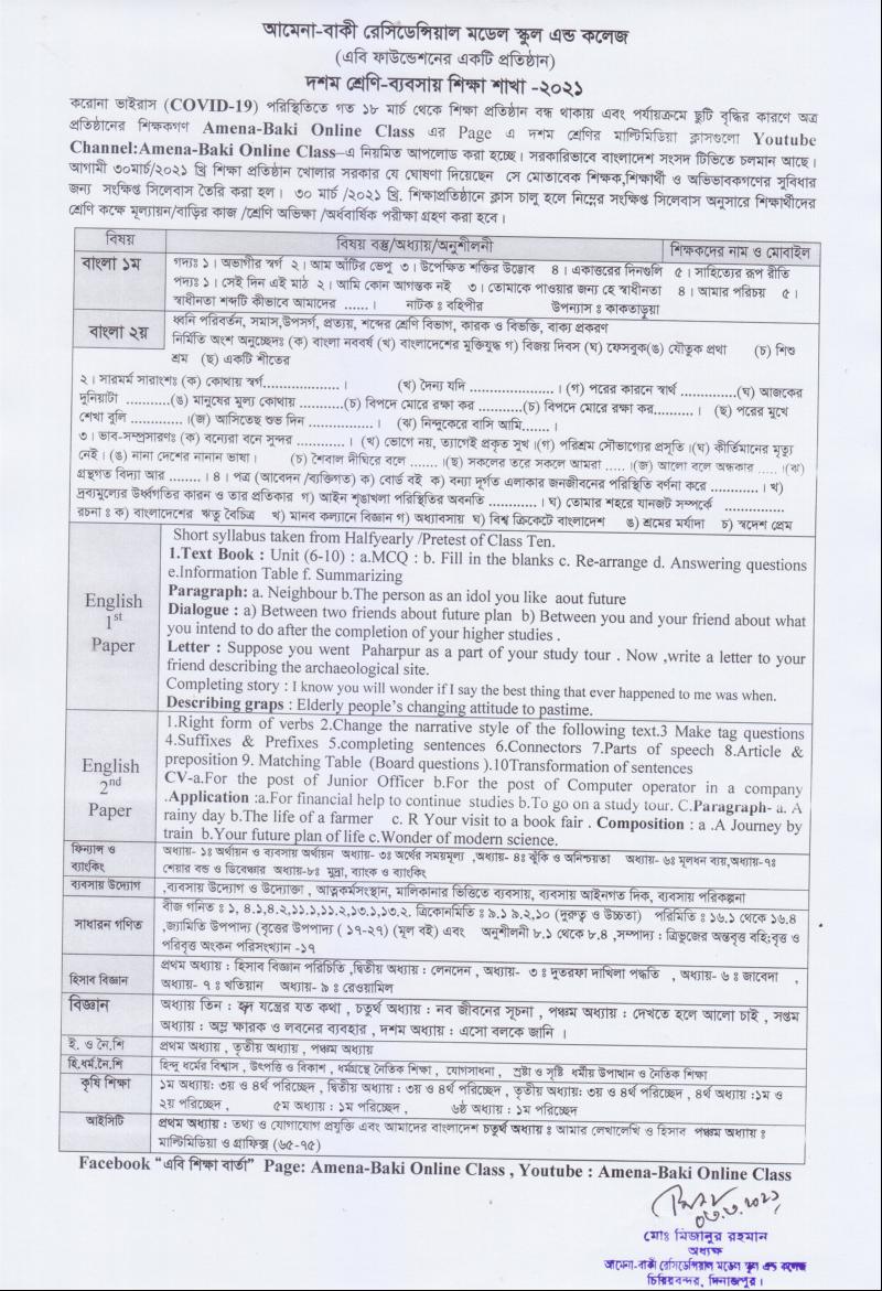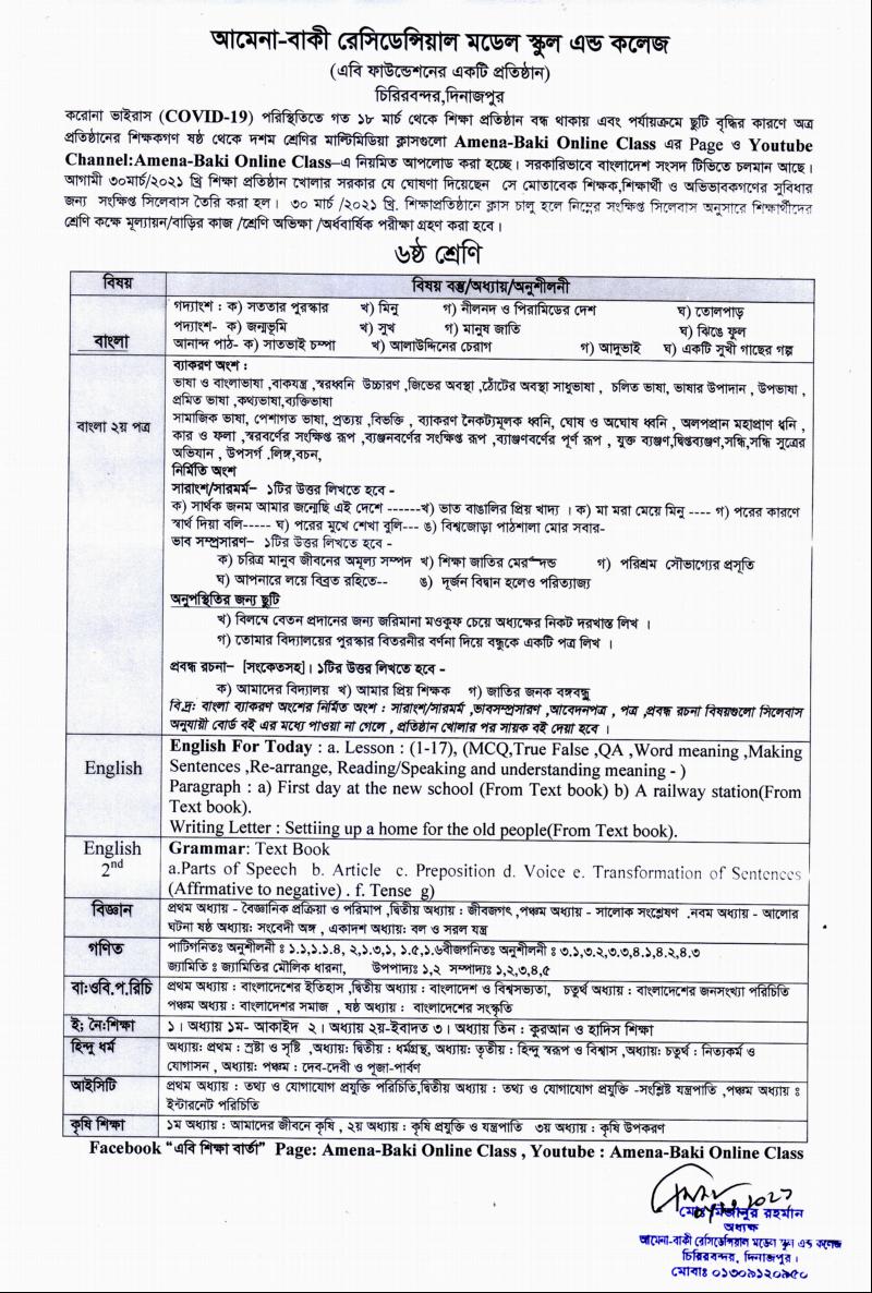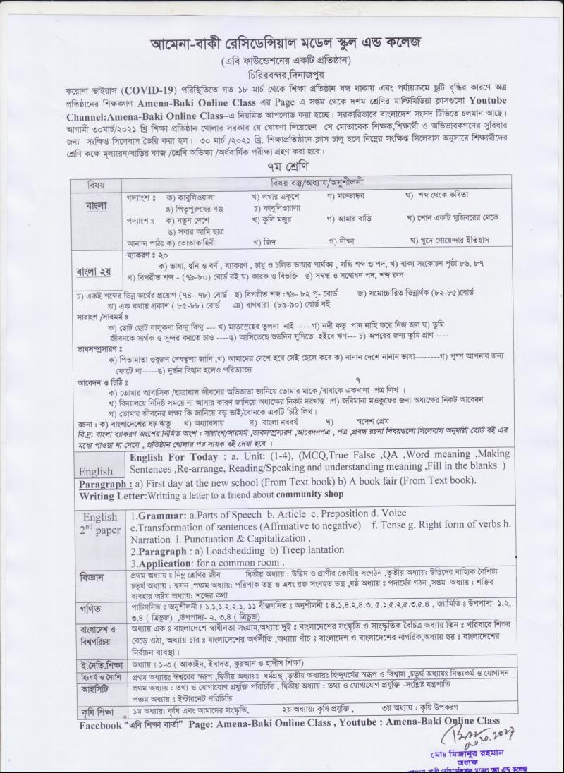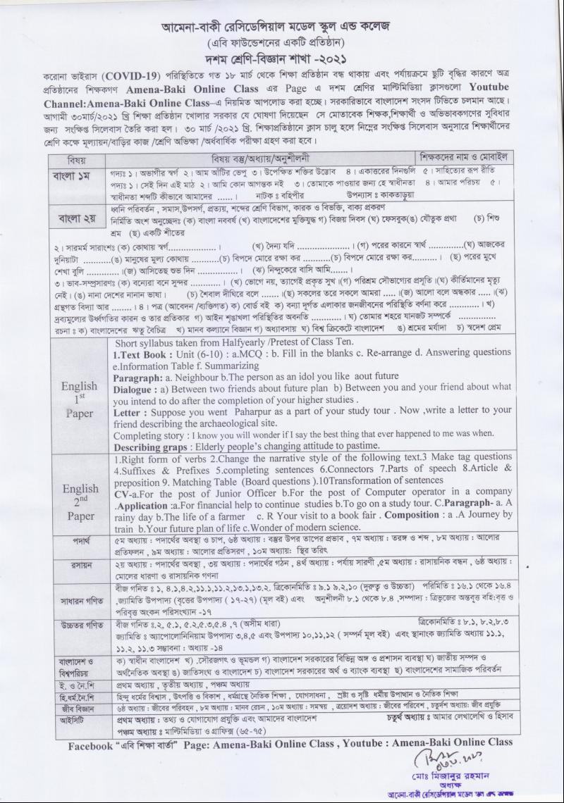 কোভিড-১৯ এর কারনে প্লে থেকে দশম শ্রেণি পর্যন্ত সিলেবাস-২০২১