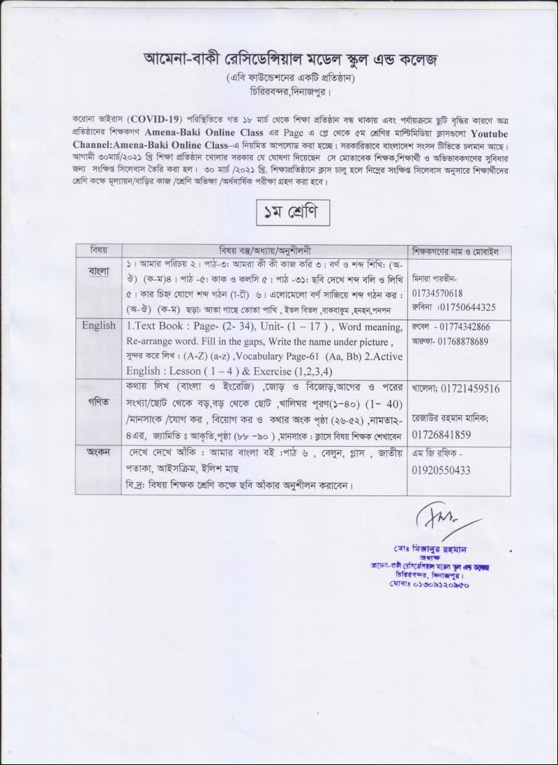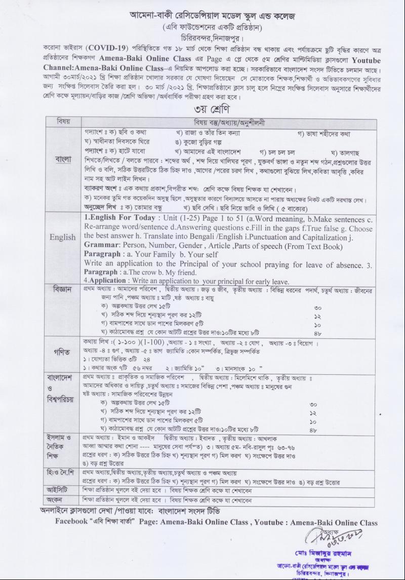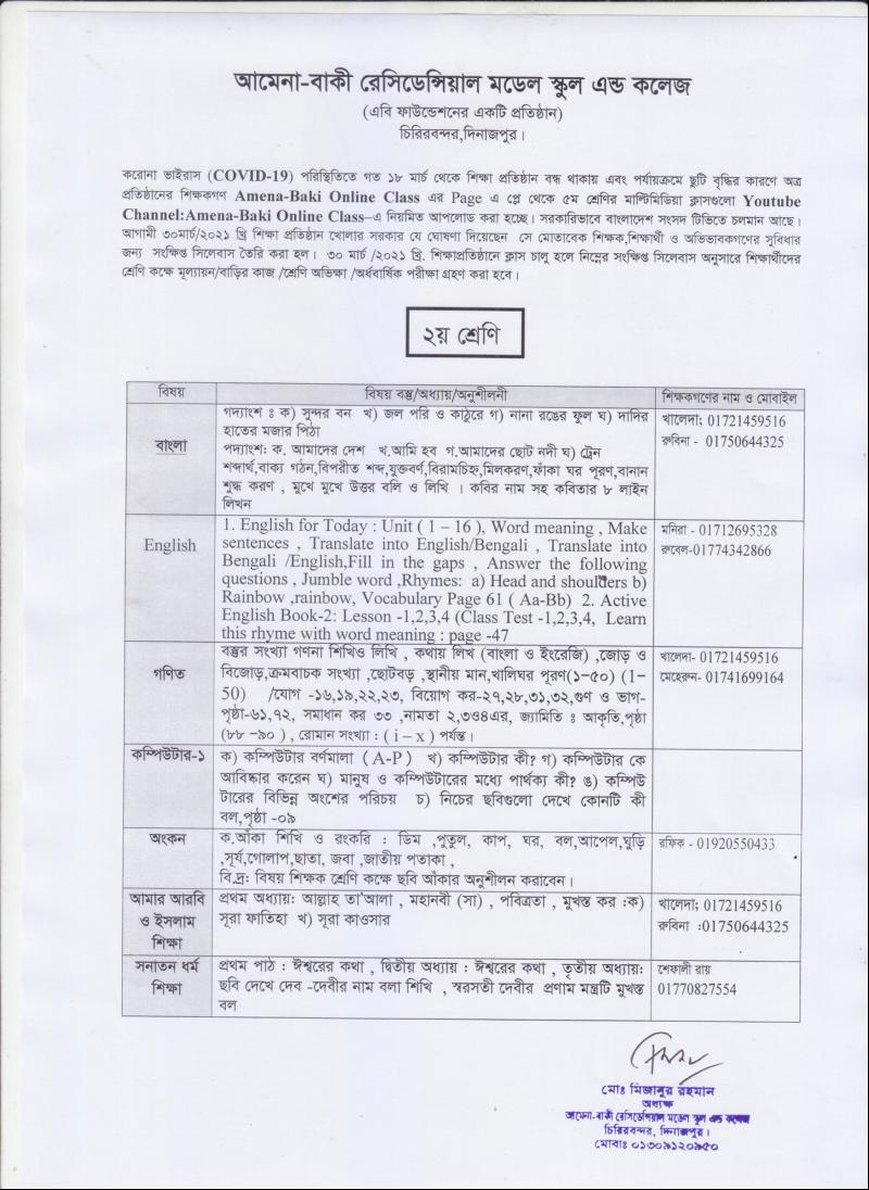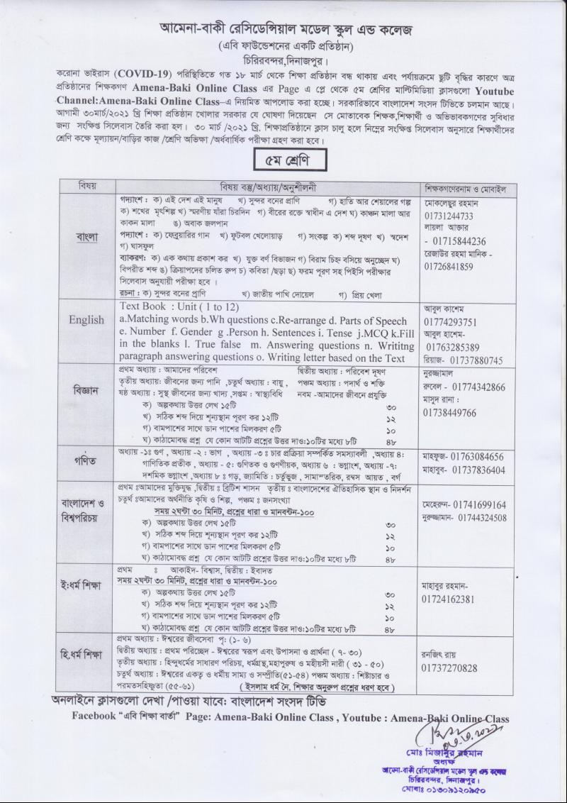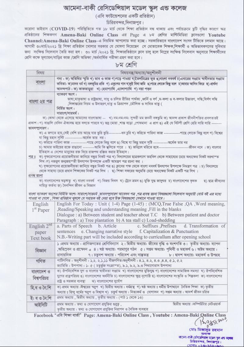 কোভিড-১৯ এর কারনে প্লে থেকে দশম শ্রেণি পর্যন্ত সিলেবাস-২০২১