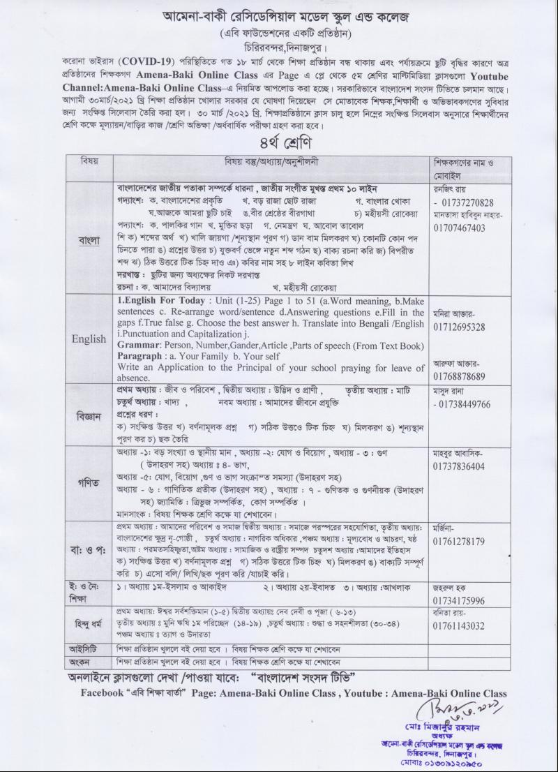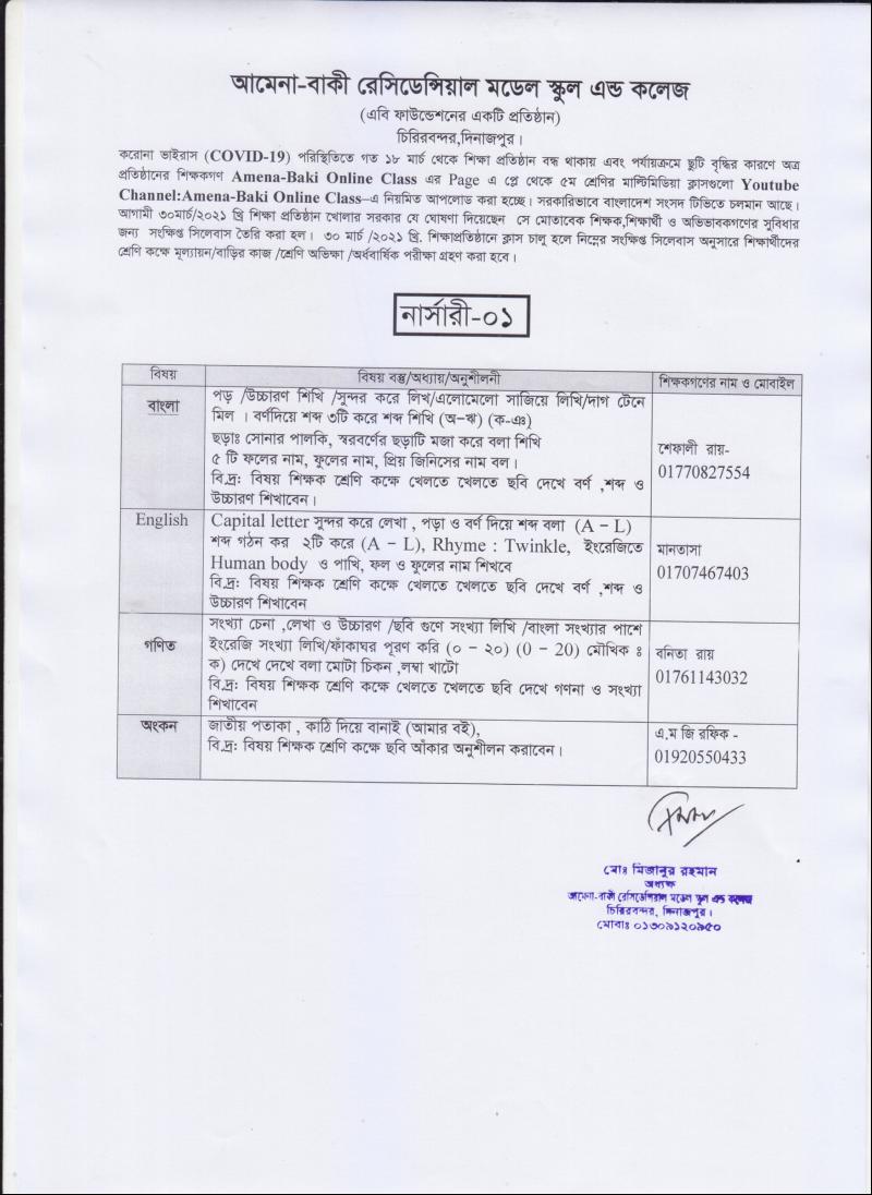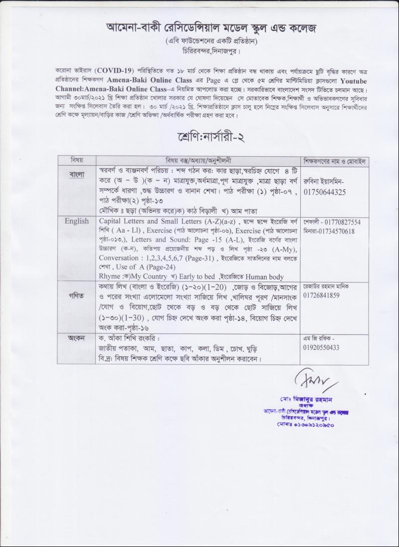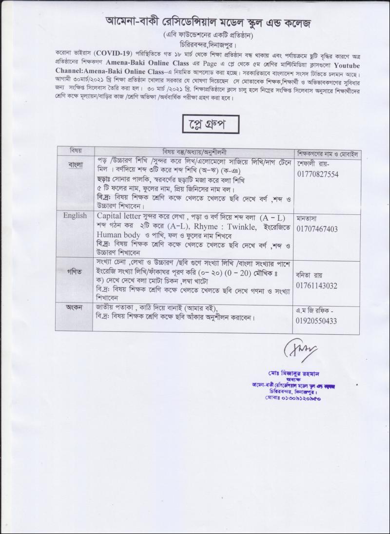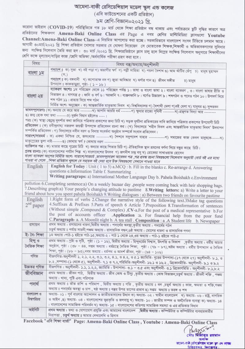 কোভিড-১৯ এর কারনে প্লে থেকে দশম শ্রেণি পর্যন্ত সিলেবাস-২০২১